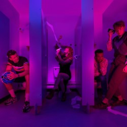 What happens when four strangers are trapped for an hour in a public, gender-neutral toilet? You get an hour-long show called Public – The Musical. The four people that are stuck together are Finley (Hugo Rolland), an anxious man desperately trying to call someone, Laura (Alicia Corrales), a nonbinary person worrying over their relationship, Zo (Annabel Marlow), a social media “activist” dressed as a bumblebee, and Andrew (Andrew Patrick-Walker), an older man who struggles to understand modern concepts like pronouns. Of course, the range of personalities makes conflict inevitable, particularly whenever Zo is involved.