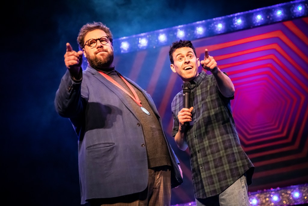As the show goes on, it goes into some emotional moments, a pleasant surprise when it comes to Mischief. What appears to be a juicy secret from the audience is revealed to be one of the character’s own, leading to a rift between the Mind Mangler and the Stooge. This sets the emotional tone for Act Two, making for some pretty impactful moments in between the chaotic magic and audience participation. Many moments of tenseness are made even more impactful by the music, composed by the late Steve Brown, who managed to strike the perfect balance between underscoring and emphasising particular moments.