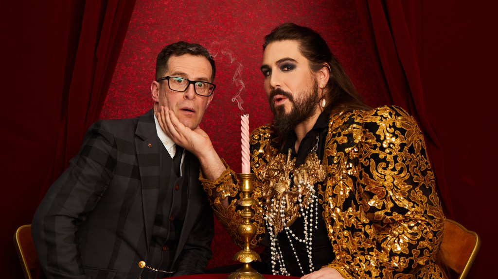 Dr Adam Perchard and Richard Thomas: Interview With the Vamp is an “Epic queer song-cycle” that focuses on the life of Dr Adam Perchard and how they became a vamp, with Richard Thomas accompanying Perchard on the piano and asking them questions that lead into the next segment of the show. From the opening number, the audience is encouraged to learn more about Perchard, with them telling us to “Jump into my brain” and follow them on their journey of self-acceptance.