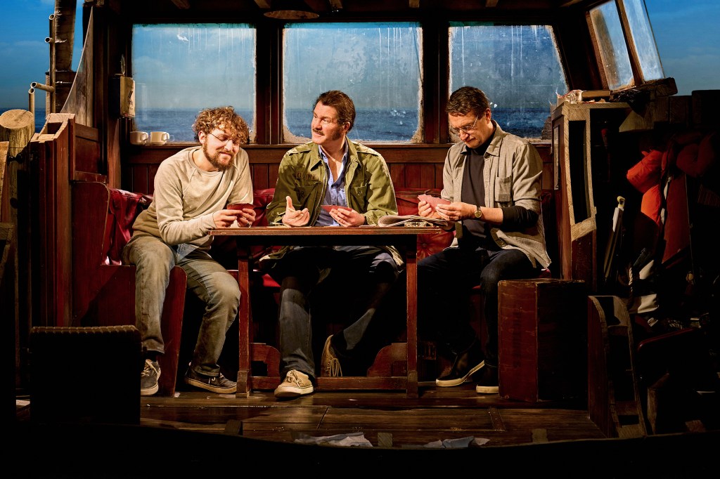 If you grew up terrified of sharks because of Steven Spielberg’s thriller film Jaws, you may have to close your eyes for the first few minutes of this play as the infamous theme composed by John Williams begins to play. But, have no fear – as we quickly find out, there is no chance of a shark attack in this theatre. The shark is, as you may have guessed from the play’s title, broken. Written by Ian Shaw and Joseph Nixon, The Shark Is Broken brings audiences onto the set of the iconic Jaws movie, where its three leads – Robert Shaw (Ian Shaw), Roy Scheider (Dan Fredenburgh) and Richard Dreyfuss (Ashely Margolis) – sit on the Orca boat, waiting for filming to finally end.